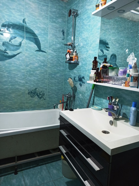 В квартире частично сделан ремонт: ванна, санузел полностью с заменой труб, пол в коридоре выложен плиткой, во всех помещениях установлены стеклопакеты и новые радиаторы. Осталось заменить в комнатах линолеум на ламинат и в некоторых местах обновить обои.
